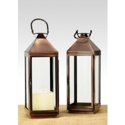 Serene Spaces Living Copper Finish Steel & Glass Square Lantern, 12" H & 4" Sq