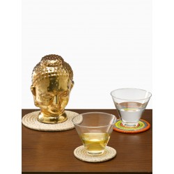 Natural and Multicolor Raffia Coasters, Set of 6