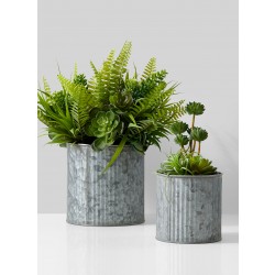 Serene Spaces Living Pleated Cylindrical Zinc Vase, Decorative Rustic Centerpiece, 3 Size Options