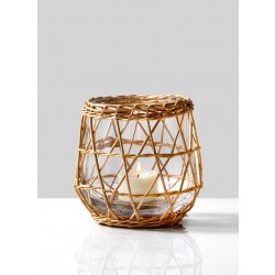 Serene Spaces Living Handwoven Wicker & Glass Candleholder, Available in 2 Sizes