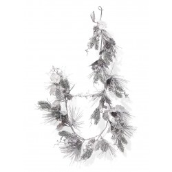 Serene Spaces Living 5ft Decorative Silver Glitter Holly, Berry & Pine Garland, Perfect for Christmas Décor
