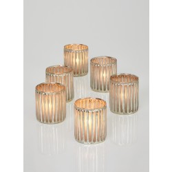 Serene Spaces Living Set of 36 Corrugated Glass Silver Votive Candle Holders, Ideal for Winter Wedding Decorations, Parties, Events, Christmas Dinner Tablescape, 3" Tall and 2.5" Diameter